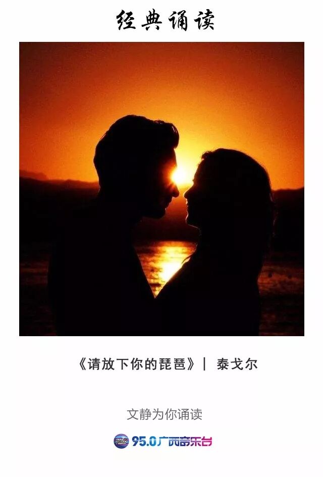 FM950《经典诵读》,我们一起来听泰戈尔的诗《请放下你的琵琶》,由广西电视台新闻主播 文静 为您诵读。