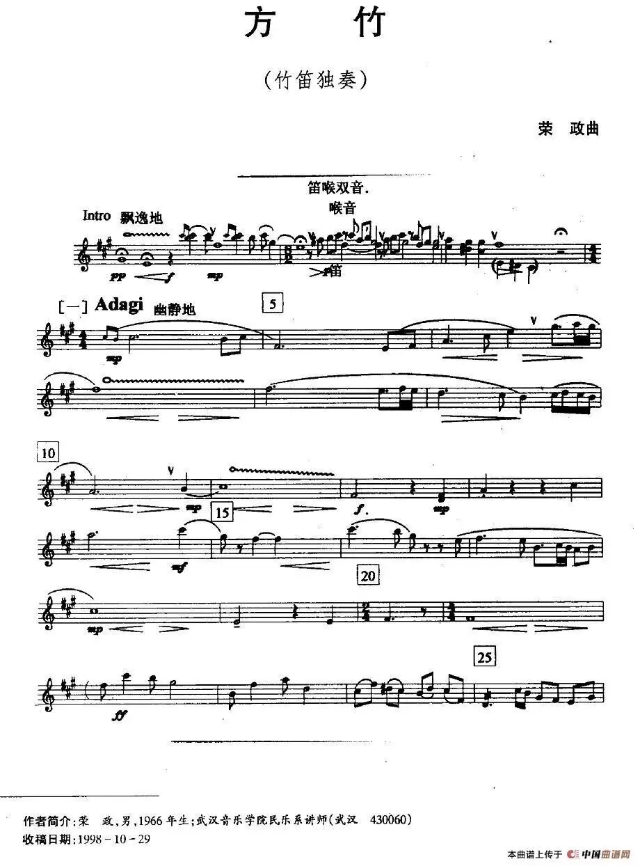 《方竹》是由武汉音乐学院中乐系竹笛专业荣政教授创作的一首低音竹笛作品。