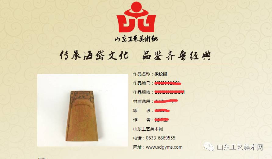 南阜砚庄秉持出售纯手工砚的原则,和第三方平台山东工艺美术网合作。凡其出售的每一方砚台都在工艺美术网(www.sdgyms.com)有备案,只要你有作品编号随时可查询该作品信息。没一方出售砚台,都彰显出其独一无二的艺术价值。