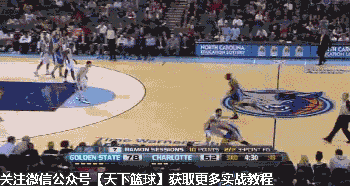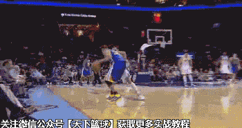 非常实用的近身摆脱技术,虽然看似简单,但要做到位不容易,假动作、转身速度及脚步衔接都是关键,对手扑的越凶就越容易上当,先来看一张库里在实战中的动图演示。