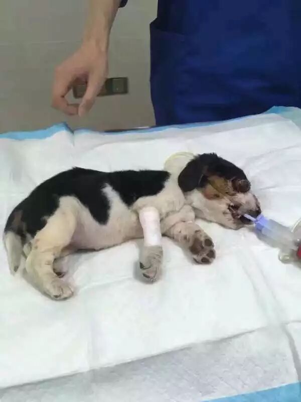 送至医院时 整条狗都奄奄一息