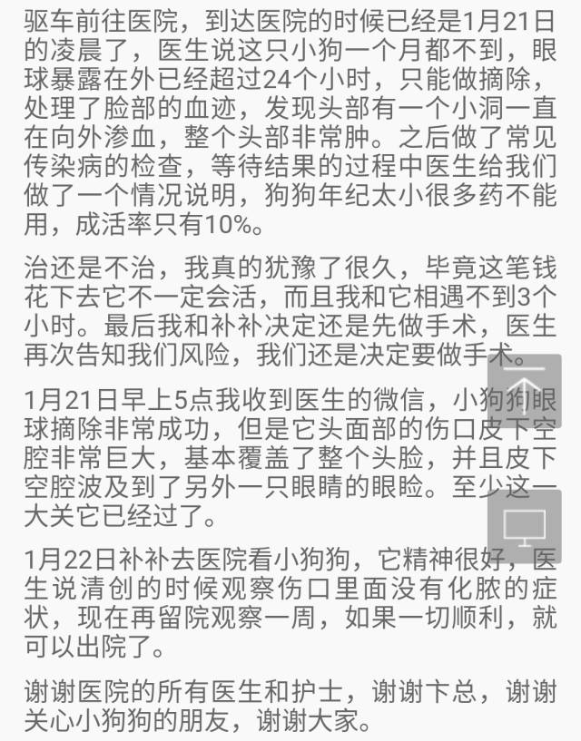 但楼主还是选择了给小狗救治