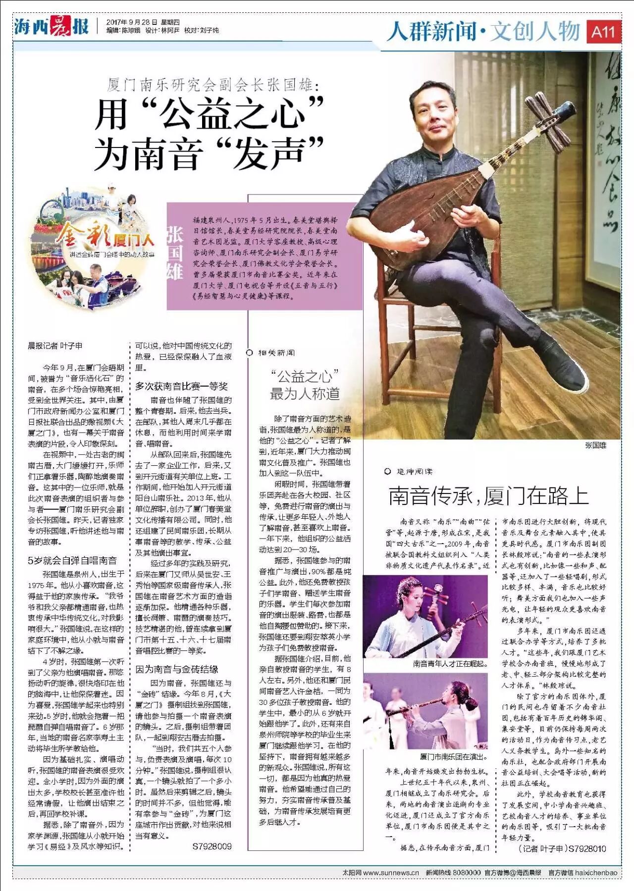 我们了解到,近年来,厦门大力推动闽南文化普及推广。张国雄也加入到这一队伍中。