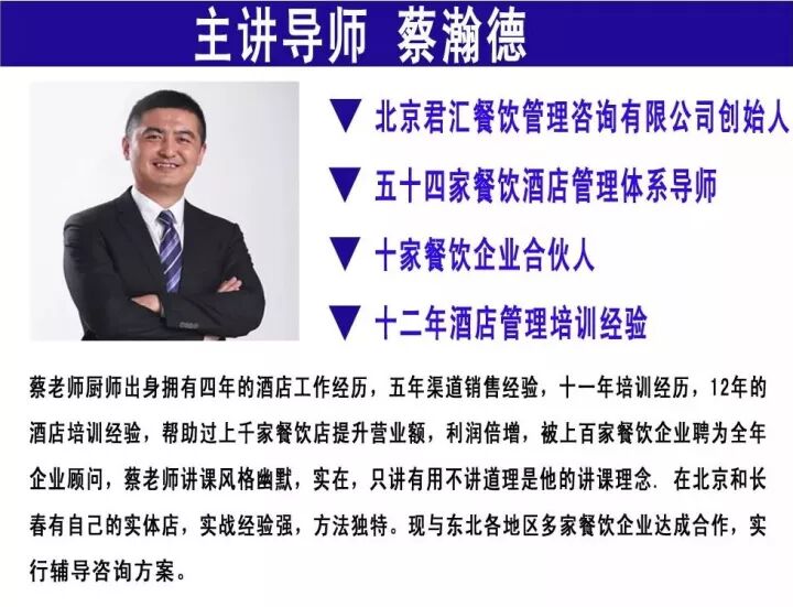 如果你也有这些困惑,在沈阳蔡瀚德老师会带来具体内容解析!—餐饮利润倍增汇。为大家提供技术交流合作平台!