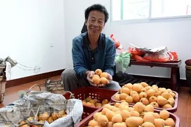 贵村,处处枇杷园,户户枇杷香!“这里是我们前年新种的10亩枇杷,目前一共种植管理30亩枇杷树。其中示范种植5亩“贵妃”品种,其余25亩种植“解放钟”“早钟”品种。”贵村党支部书记陈淑义如是说。陈淑义是蕉城区支提山枇杷产业协会负责人,也是九都贵村最大的枇杷种植户。今年,他收获了2000多公斤枇杷,按12元/公斤的价格来算,他的净收入可达到20000多元。在陈淑义的家里,他和家人正在将采摘下来的枇杷挨个挨个的挑出来并分箱装好。陈淑义说,目前枇杷正进入成熟采摘上市阶段,村民们正忙于采摘,部分游客也在枇杷园进行采摘和品尝。