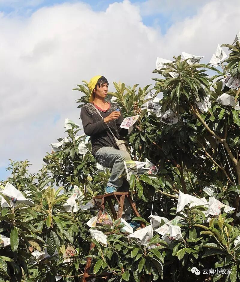骑着加油的摩托车一直往上走,摩托车嗡嗡嗡响,两旁穿过成片的枇杷树林,是每天摘枇杷的日常。