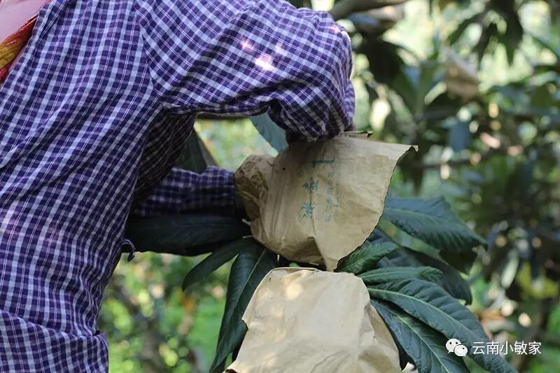 在这之后便是套袋,而袋子分为两层,里边是网通,规范枇杷的生长,外边是包装做成的外纸套,抑或是定做的牛皮纸套,两种都是为了让枇杷更好的吸收光照,而减少农药的使用,甚至不用。
