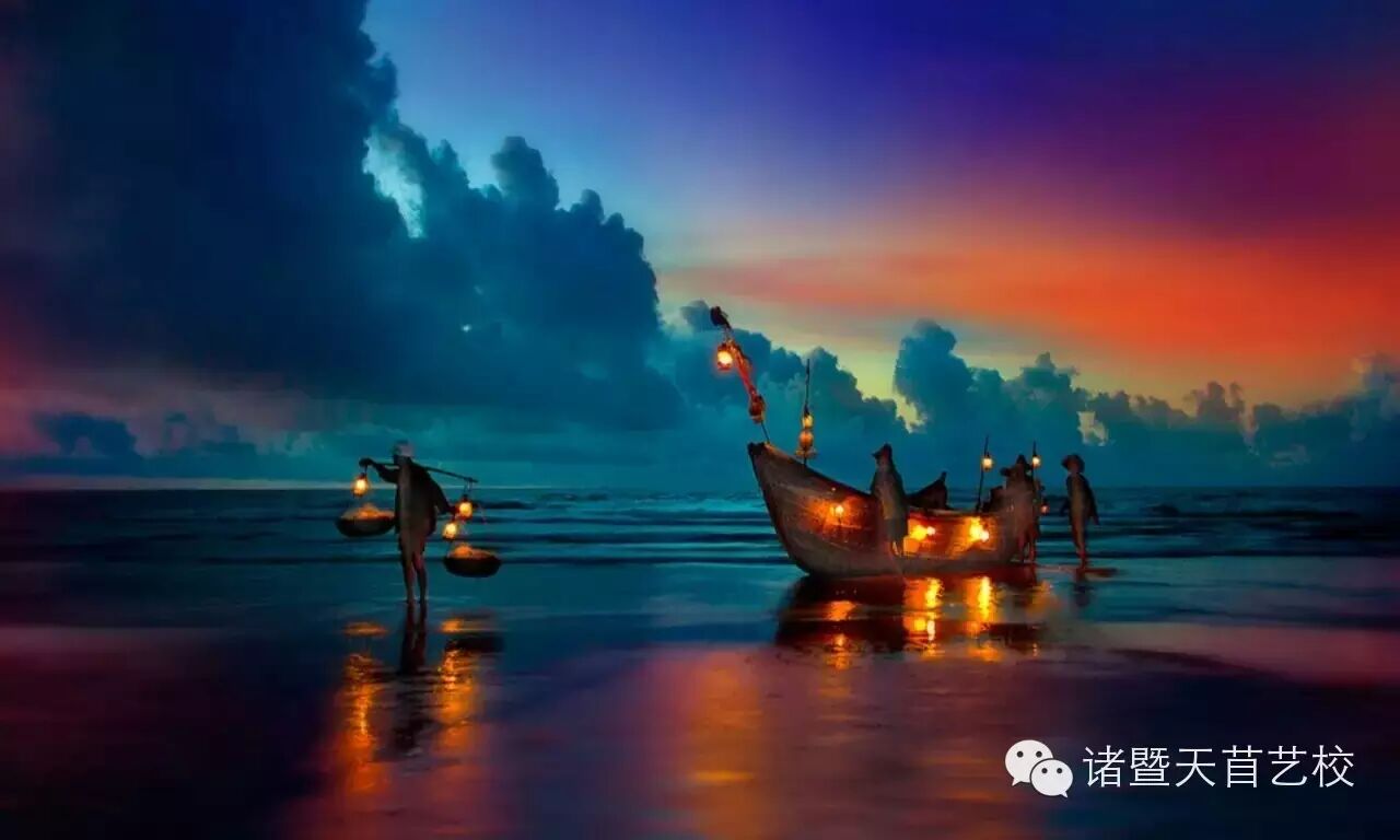 而且“渔舟唱晚”甚至成为文化符号,很多文学、摄影、绘画作品都以渔舟唱晚的意境创作出大量的作品。
