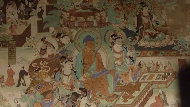作展览的画都是老艺术家们从莫高窟临摹回来的