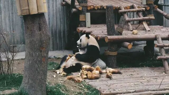 走走看看的时候看见一只怀孕的熊猫吃笋 一直以为它们只吃竹子呢哈哈