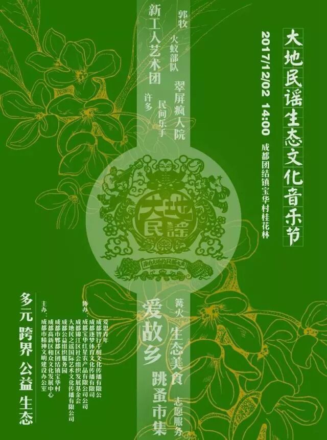 在成都市精神文明建设办公室的支持下,成都公益组织服务园联合成都高新区和众文化发展中心、成都锦江区社会组织发展基金会、大地民之谣国际艺术文化传播有限公司等多家单位,共同举办“百日红·文书坊”——成都第三届大地民谣生态文化音乐节,以生态与音乐结合,实现多元互动参与,与更多的人一起关注并支持生态农业、生态文化。