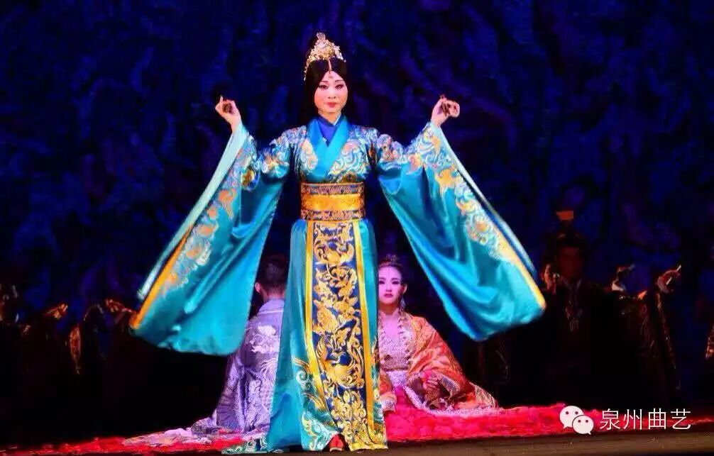 当然,像五十年代初办个“扫盲班”来硬性要求他们学习南音绝非上策,还需花费心思、慢慢疏导、谆谆善诱,让他们从喜欢、兴趣到深入学习、直至夯实传统南音的基础;想必《凤求凰》的创新初衷也在于此吧。可能有人不解,现在的院校除了教学和科研外尚有传统文化进院校的重大课题等着你去做。《凤求凰》做到了。但我对艺术品种命为“南音新作”持有异议,整台演出歌之舞之、足之蹈之,且看五、六十年代著名舞蹈家赵青主演的《宝莲灯》以及现代芭蕾舞剧《红色娘子军》连唱、白都没有、却定为剧,即舞剧《宝莲灯》、《红色娘子军》;我们为什么不能叫南音乐舞《风求凰》呢。“南音新作”在艺术词典找不到,更似有畏手畏脚之感觉,此一家之见。而且,我还建议这个南音乐舞可以参与全国、全省的“艺术节”和“校园文化节”摘金夺银;既从另一个侧面弘扬南音,又宣传海丝之路起点、东亚文化之都——泉州的动态传统艺术!海内外专家、南音弦友观摩了《凤求凰》之后,深有感慨。有人说,当千年前我们的老祖宗在編造工X谱,创造了这一美妙的音乐之时,应该不会想到要让她流芳千古,并且随着时光的穿越,这一差点泯灭的传统古音即将成为传说之际,却在二十一世纪的今天突然焕发出蓬勃的生机和耀眼的光芒!正因为她的稀有、珍贵,才能成功列入“世遗”。当然、从唐、宋、元、、明、清至民国直到如今,从历史资料看到的是敦煌壁画。北方几个出土文物中的乐器见证了我们现在演(奏)唱的曲颈琵琶、十目九节的洞箫、二弦、三弦、拍板有一样的传统规制。但是,其意象的展示形态又有谁能说的清楚呢?所以、就当今而言应该“两手抓两手都要硬”。被认为是传统的“指、谱、曲”,既要巩固又需积极采取有效措施进行抢救。“传统南音记录工程”和诸多专家们编校整理成册的南音“指、谱、曲”进入校园、社区进行教授和永久保存便是一例。另则,立足传统才能“万变不离其宗”的尝试性创新;《凤求凰》调动了艺术名家曾学文、吴世安、安凤英及强有力的灯光、音响、舞美、服装等综合艺术的人员进行操作来衫托庄丽芬这位中国曲艺牡丹奖新人奖得主、泉州南音乐团主要演员和泉州师范学院音乐与舞蹈学院青年教授陈恩慧最佳搭档的精彩演唱,使之成为一幅唯美的画卷!最后,让我借用一段联合国教科文组织《保护非物质文化遗产公约》中明确指出的条文作为本文的结束语吧:【非物质文化遗产是“指被各社区、群体,有时是个人,视为其文化遗产组成部分的各种社会实践、观念表述、表现形式、知识、技能以及相关的工具、实物、手工艺品和文化场所。”其特质是“世代相传”,并“在各社区和群体适应周围环境以及与自然和历史的互动中,被不断地再创造,为这些社区和群体提供认同感和持续感,从而增强对文化多样性和人类创造力的尊重”】。