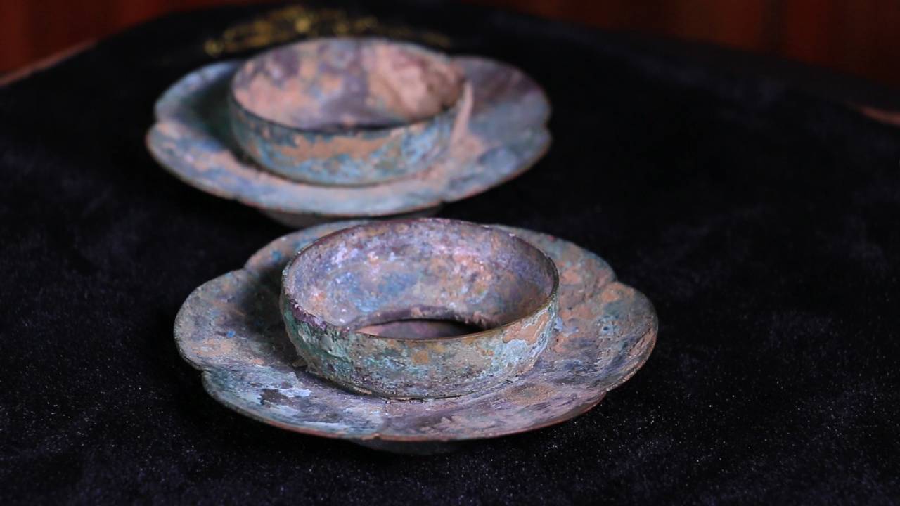 茶托又叫茶驼子,是防止茶碗,茶盏烫手而设计的器型,唐宋元时期饮茶、斗茶成为了一种时尚,因此这类茶具有了长足的发展。这对茶盏托呈海棠状,直径约10厘米,由青铜铸造。盏托材质多以陶瓷为主,那么这对青铜材质的盏托背后到底有怎样的故事呢?