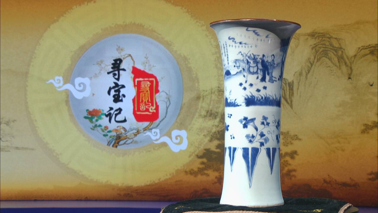 节目中这件花觚描绘的是《西厢记》中的长亭送别。经专家现场解读不难看出,其青花的发色特点、花觚底部以及口沿处的做工和颜色均具备明末清初的时代特征。
