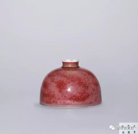 豇豆红——铜红釉品种之一。在浅红色釉中有深红色晕点和绿色苔点,釉色似红豇豆,故名。清康熙时景德镇窑创烧,器物多是小件文房用具,如柳叶瓶、大白尊、水丞、印盒等。清末至民国时,有仿品,但很粗劣。