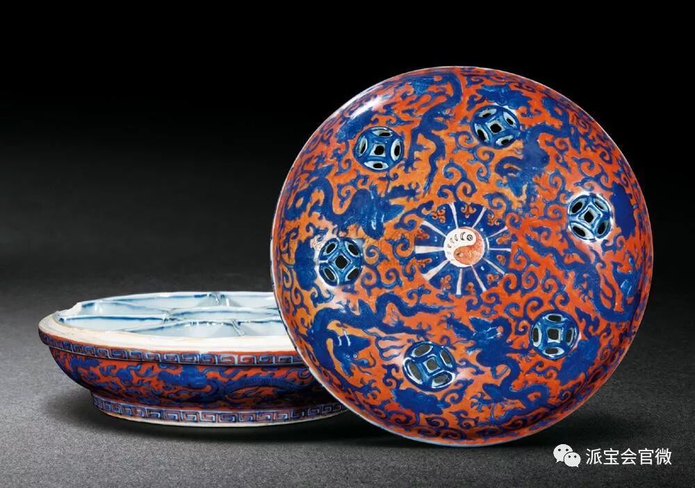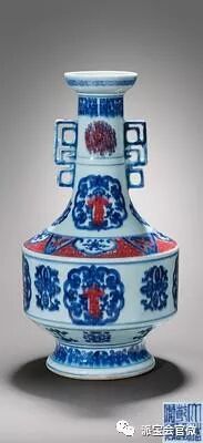 青花釉里红——在一件瓷器上同时用青花和釉里红两种色彩装饰,故名。元代景德镇窑创烧,由于烧成难度大,一直被视为我国古瓷的名贵品种。明清时色彩更加绚美,所绘龙、凤、缠枝花卉等,十分绮丽。