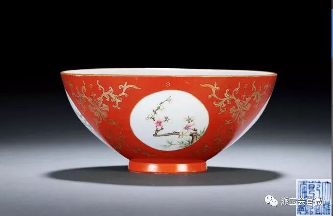 珊瑚红——铁红釉品种之一。以氧化铁为着色元素,经低温烘烤而成,因釉公可与天然珊瑚媲美,故名。清代景德镇窑烧制,康熙、雍正两朝,多以珊瑚红作地色,上面绘以五彩或粉彩。乾隆时多在珊瑚红上描金,或用其来装饰器耳。