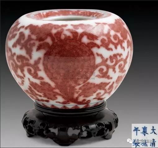 釉里红——釉下彩品种之一。以氧化铜为着色元素,在瓷胎上彩绘,施釉后经高温焙烧而成,白地红彩,红彩在釉下,故名,始于元代景德镇窑,明清时产品更为绚丽。