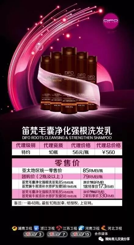 笛梵洗发水价格多少钱?多少钱一套?做过微商的朋友都知道,其实微商的门槛是非常低的,朋友们只需要拿货成本就可以加入微商团队。并且有专人来带哦。笛梵洗护线上下线到如今,越来越好做,为什么?洗发水,每家每户都要用,不分季节,且用的好的客户不会再去超市买20块,30块的洗发水,他会回购。朋友间的口口相传,也让你的产品更好卖