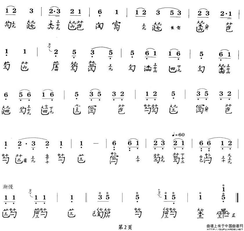 乐曲短小古朴,表现出高人雅士在深山清泉之间,怡然出世的意境。