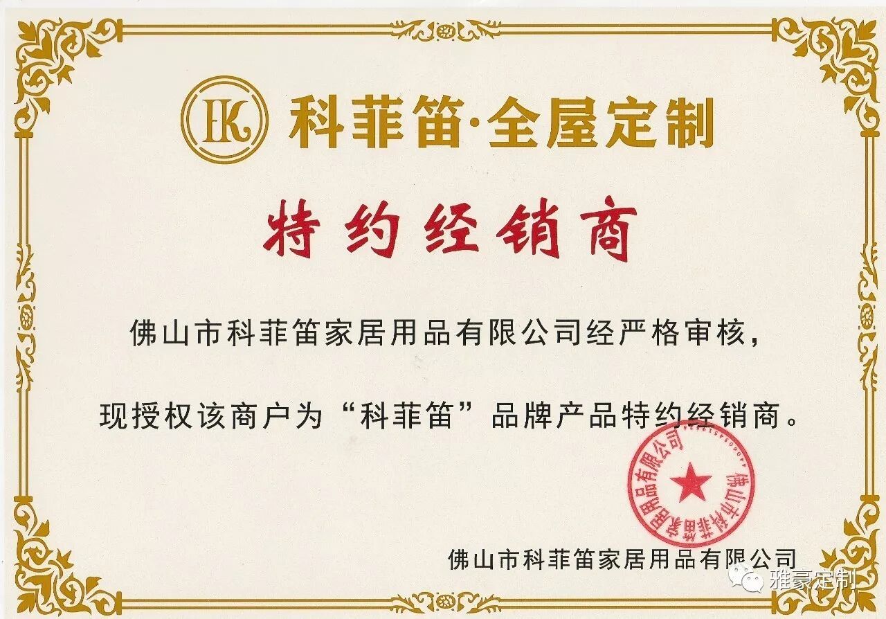 热烈祝贺化州雅豪定制家具店成功成为佛山“科菲笛”品牌的化州地区的特约经销商!