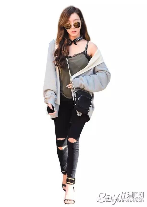 时尚博主章凝用宽大的男友风外套搭配吊带背心裙,就算是平胸妹,露出的香肩也能散发浓郁女人味。