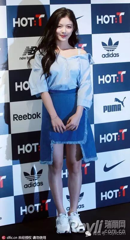 金裕贞粉丝见面会“迷妹”拜倒石榴裙,一字领衬衫配不规则边牛仔裙新潮别致。