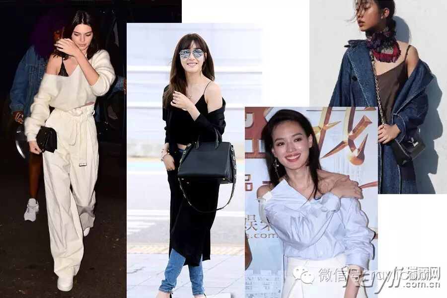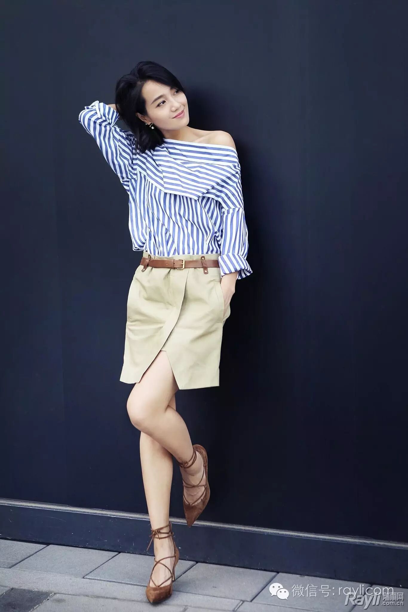 朱丹露美肩时尚街拍,一字领衬衫清爽大方,但只露出一侧更时髦哦!