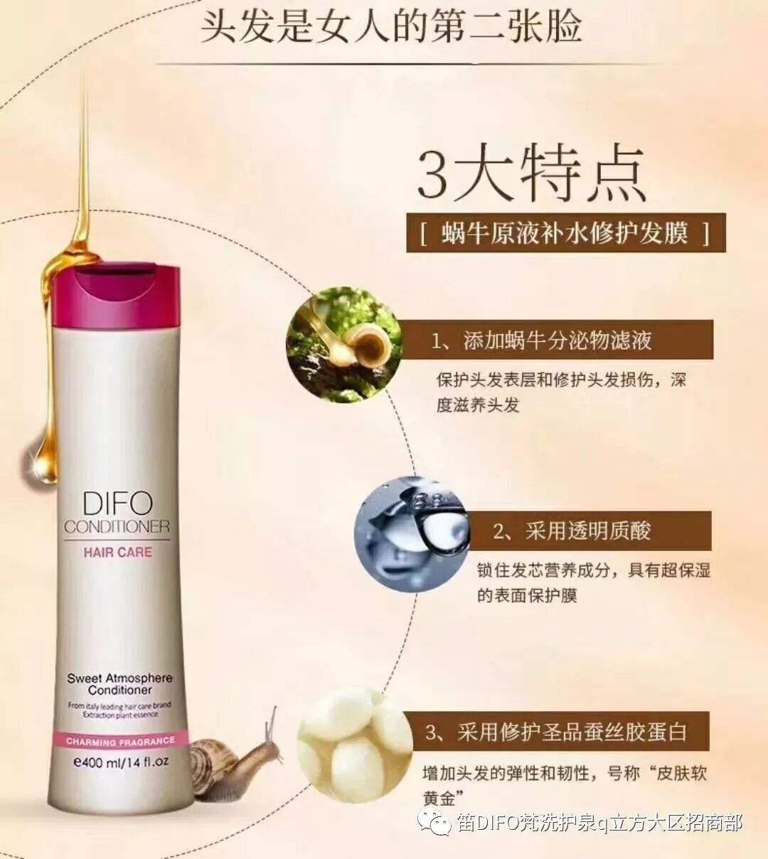 采用美容补水圣品——蜗牛分泌物滤液、修护圣品蚕丝胶蛋白、水解胶原、氨基酸与水快速分解后产生对头发有益的营养成分,能够极速修复受损发质,是因为发膜分子小,能快速进入发芯内部,直接针对受损位置进行修复,再生,并且透明质酸会形成锁水屏障,进入头发内部的成分不会随着冲洗被带出来,进行深层修复,针对受损、毛躁、干枯发质有明显的修护、补水效果,修护受损发质,一般受损10度发质一次即可修护3-5度,让秀发柔、软、轻、亮、顺。yxd1656488446![]()