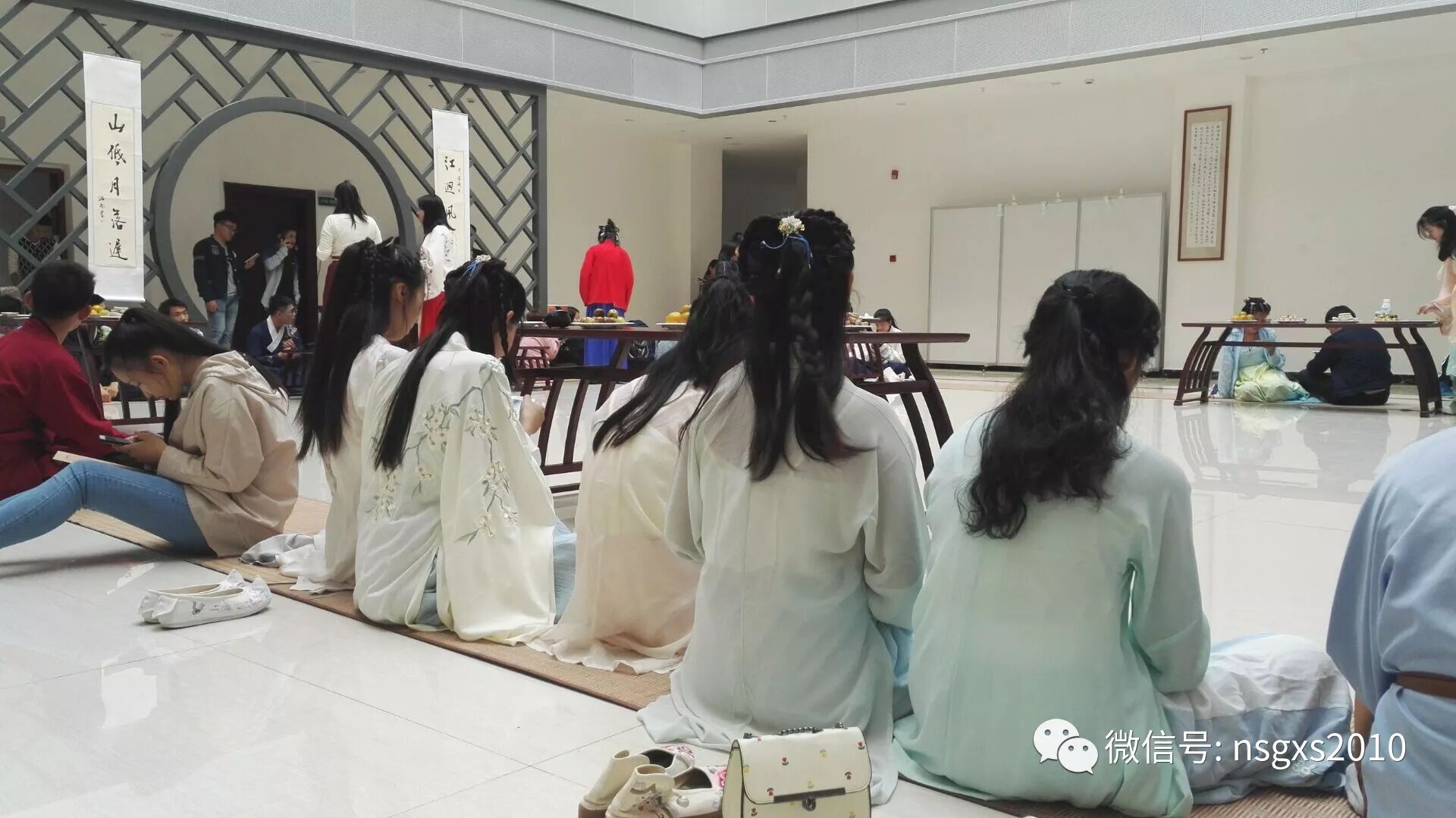 穿汉服的主持小姐姐为活跃气氛,组织大家一起玩成语接龙,在座的每一位同袍都毫不逊色,快速接龙,一轮过后,主持人“嘘”的一声,顿时让片场静了下来,“为了让大家更好的进入我们的雅集活动,大家先静坐10分钟”。主持人的话结束后,大家伴随着古筝弹奏静坐了下来。