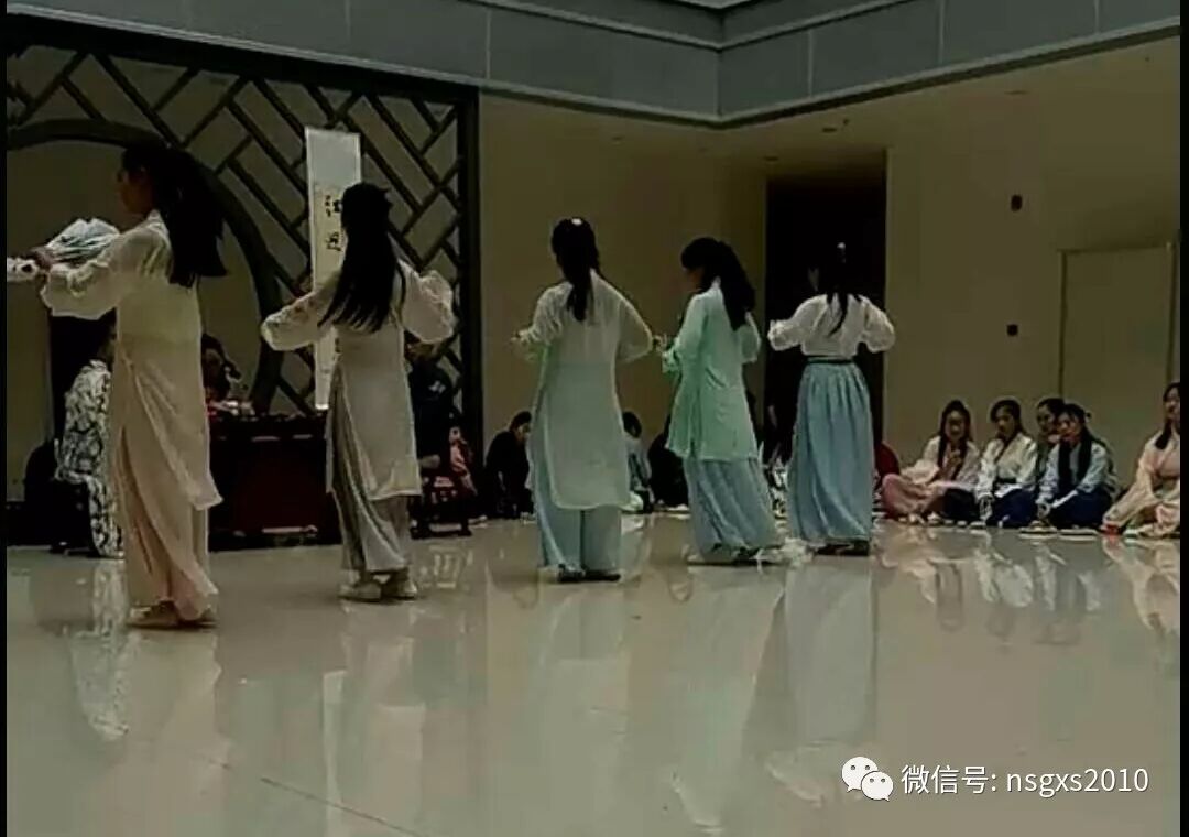 一支优美的舞蹈《纺呗》拉开了这次活动的序幕,紧接着,舞蹈《典狱司》让我们领略了与《纺呗》不一样的风采。我们下一个环节是介绍了许多妹子喜欢的汉服知识以及行礼的知识,这让我们进一步地了解了国学的韵味。