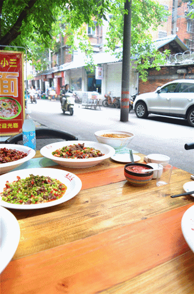 一条不算宽的笔直的巷子,车子错车都有点困难,头头上稍微宽点腾出来几间铺面几乎都是馆子。