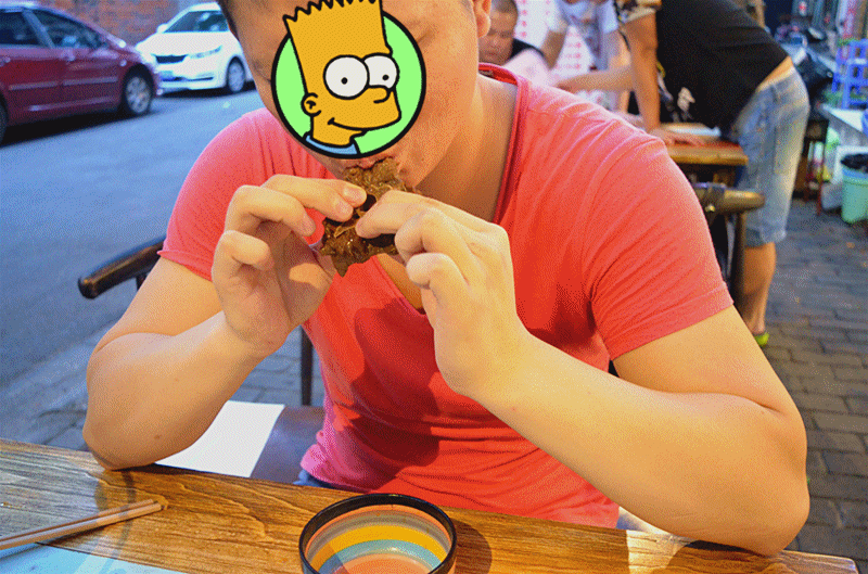 街边绿树成荫,自然也成了安逸的露天餐位,坐在树下吹吹小风,啃点儿羊蝎子,舒坦~