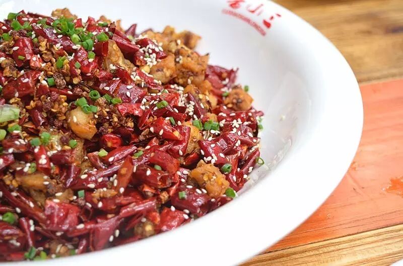 又是看起就冒汗系列,铺天盖地的干海椒和芝麻,我仿佛看到了远方的辣子鸡。