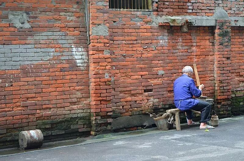 一位老磨刀匠精细地做着手里的活路,不知道他和这条巷子在现代化的洪流中还能坚持多久。
