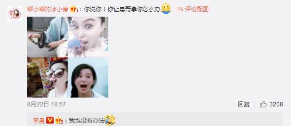 不得不承认,范冰冰真的是吃货界的一股清流呐!额,为什么这么说?有网友PO出了范冰冰清新脱俗地吃美食的样子,并配文质问范冰冰:“你说你!你让晨哥拿你怎么办”李晨倒是无奈地回应道:“我也没有办法”。好吧,悄无声息地被狗粮又是重重地砸了一脸。