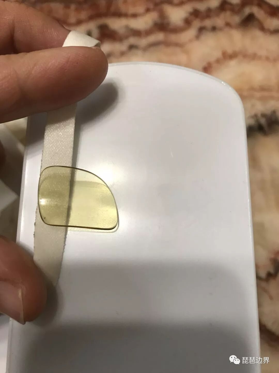 1 将宽度8~10毫米的胶布粘在义甲的三分之一处,演奏家张强曾经告诉我说:"琵琶前辈们尽量把义甲面积留到最大为了防止胶带碰弦声音发闷"。他教我注意:在大指与食指的义甲背面垫一层胶布预防义甲边缘在大力扫拂时割肉受伤。由此可见,宽度越窄越灵活缠绕,可以参差、也可以重叠。(卖广告:连青专利肤色胶带,十年经验之谈)因此,我特选0.8mm八毫米宽胶布就为灵活使用与兼顾儿童指关节窄的原因。