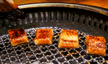 烤鳗鱼要翻6次,刷6次汁,服务员会亲自帮你烤。厚切的鳗鱼烤的时间不够会不对味,烤太久会焦,非常讲究火候。