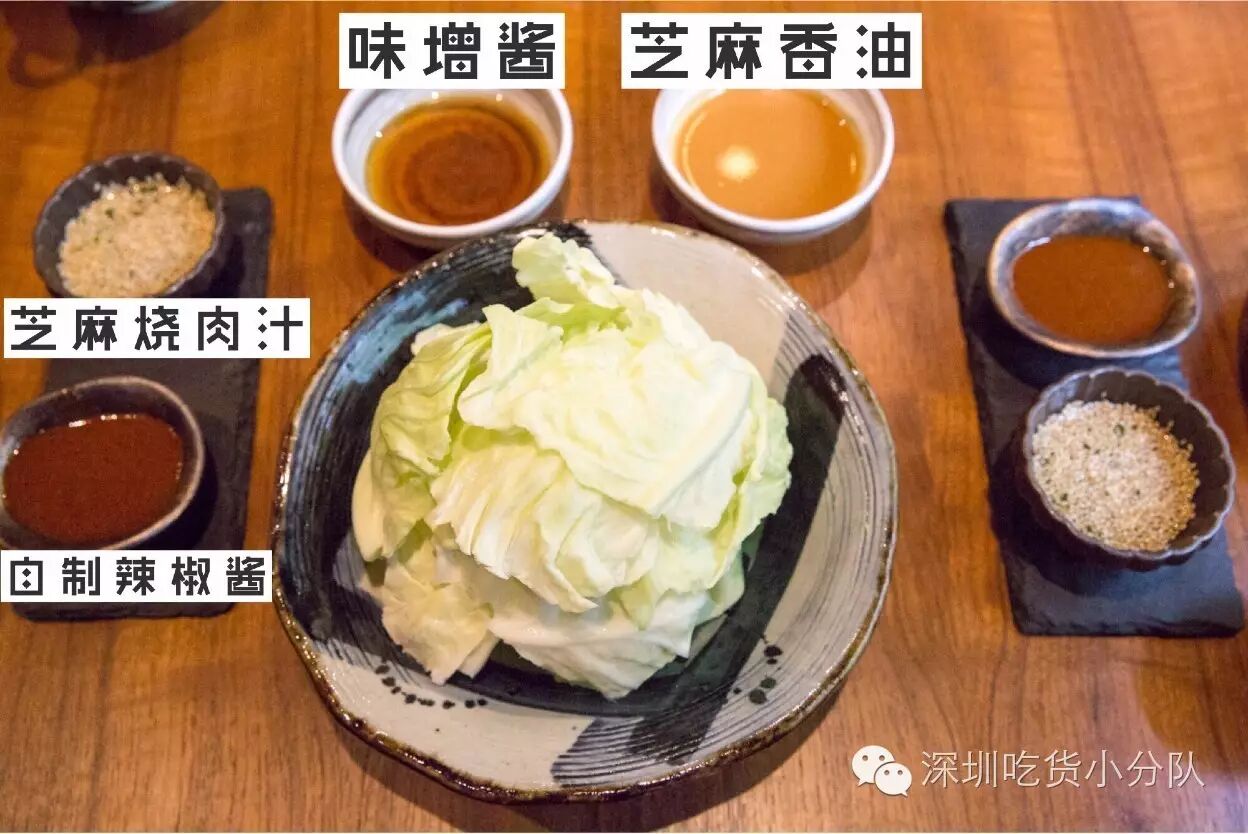 这里的包菜跟韩国烤肉的包菜不一样,这种“金包”包菜片比较厚、大,甜甜的,点烧肉都会送金包,直接手撕成大片,蘸着味增酱或芝麻香油吃。并不是用来包烤肉的。