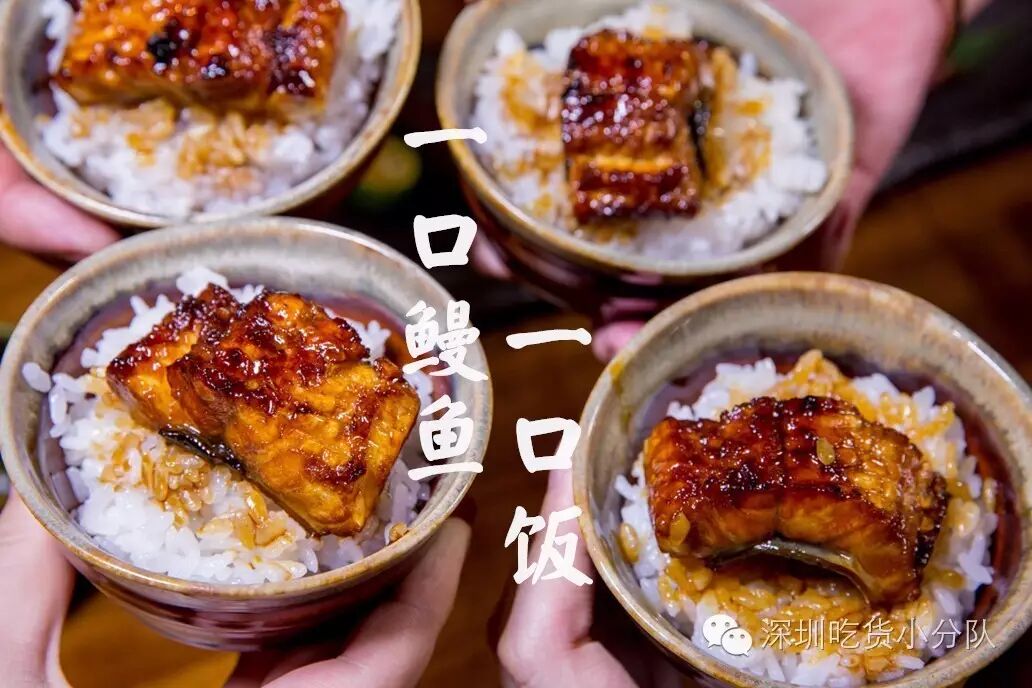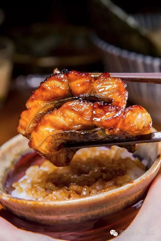 一口鳗鱼一口饭,在饭上刷几滴鳗鱼汁,配着鳗鱼。