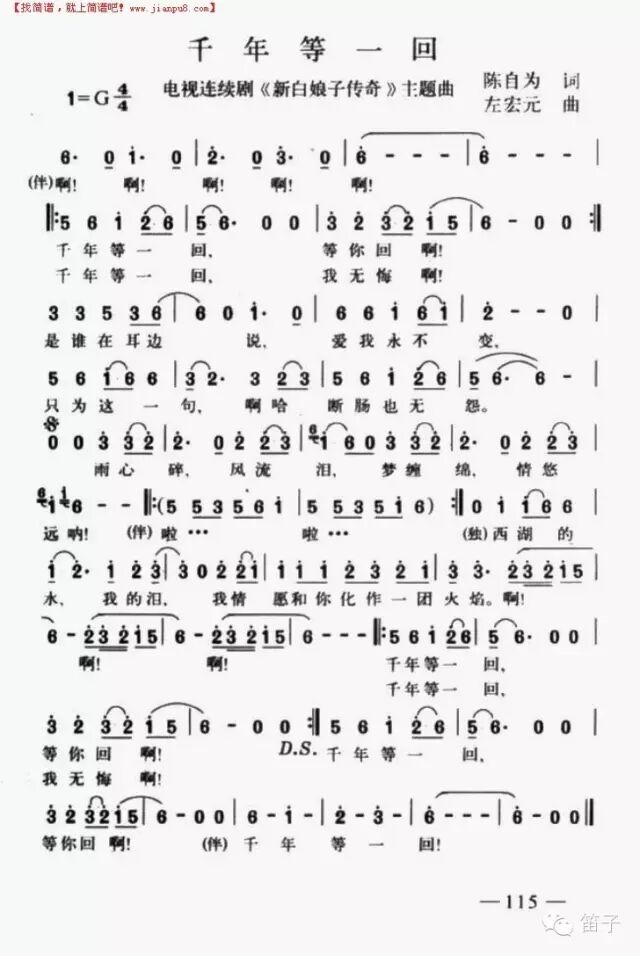 《千年等一回》是首播于1992年的中国台湾电视剧《新白娘子传奇》的主题曲。这首歌曲旋律优美、唱词经典、朗朗上口、回味悠长,配合着电视剧《新白娘子传奇》的热播而被推向巅峰,成为华语乐坛传唱率最好的歌曲之一,亦成为白蛇传故事和浪漫爱情的代表旋律。
