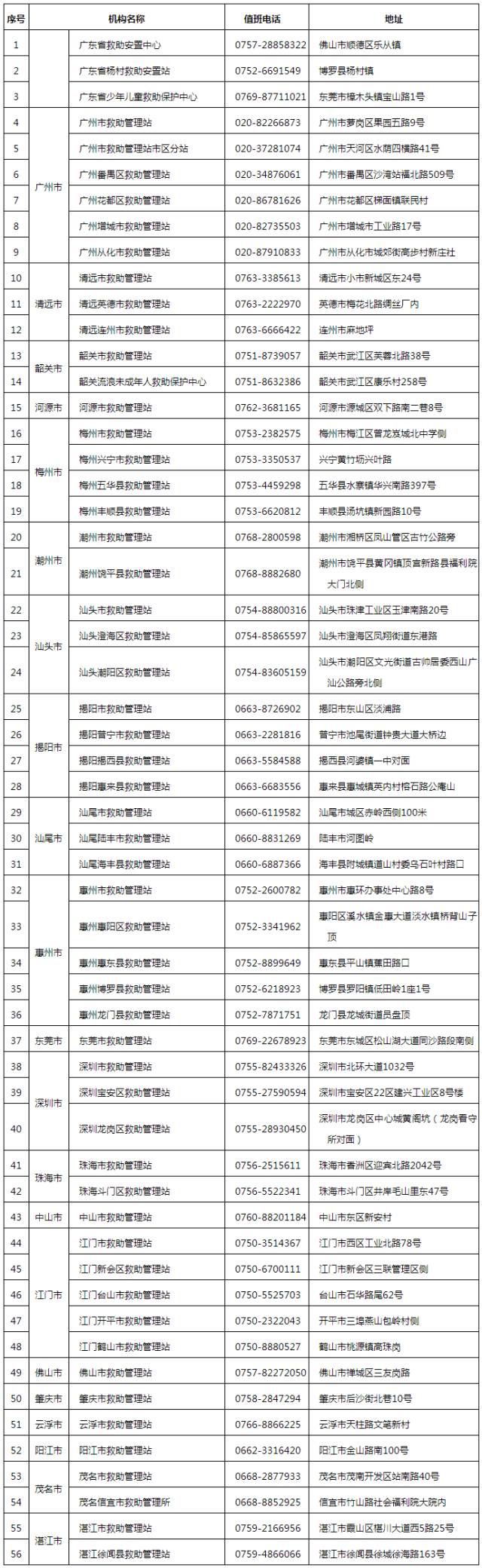 广东省救助管理机构联系方式↓↓