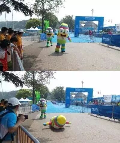 只不过,在“一摔成名”后,各个场馆的砳砳投观众所好,更加人来疯地“折腾”自己,硬是靠耍宝卖萌闯出一片天。在观众和网友眼里,砳砳的可爱度不断爆表,已经不再是那个“不忍直视”的五彩大腰子,而俨然成了“史上最带感吉祥物”。