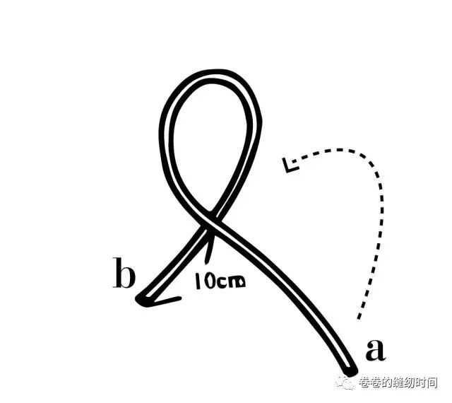 50厘米长的线,B端留10厘米的长度,A端在上,如图一样做一个圆环。