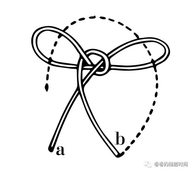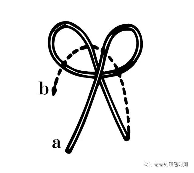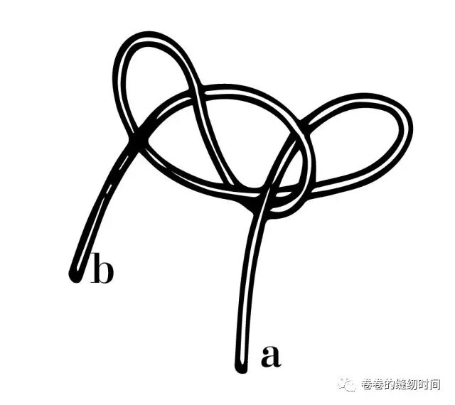 A端从右侧开始,再绕一个换,线在最上面。B端压过右侧环形,从左侧环形底部穿过。