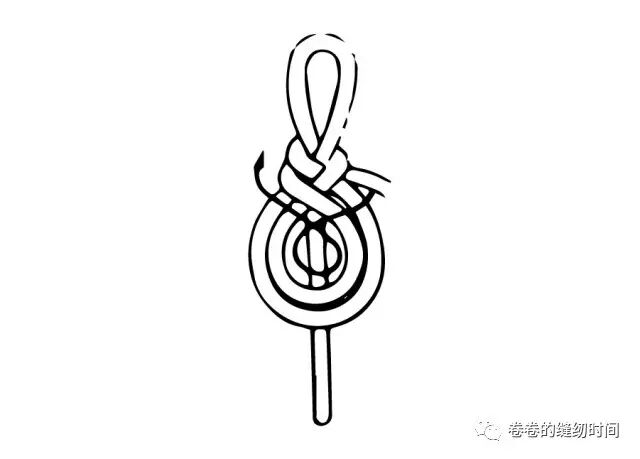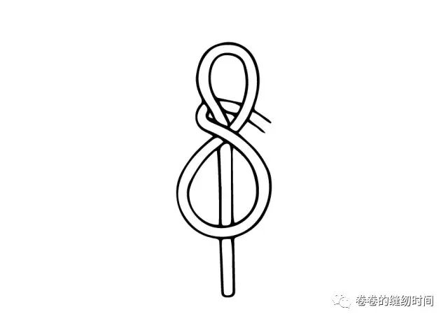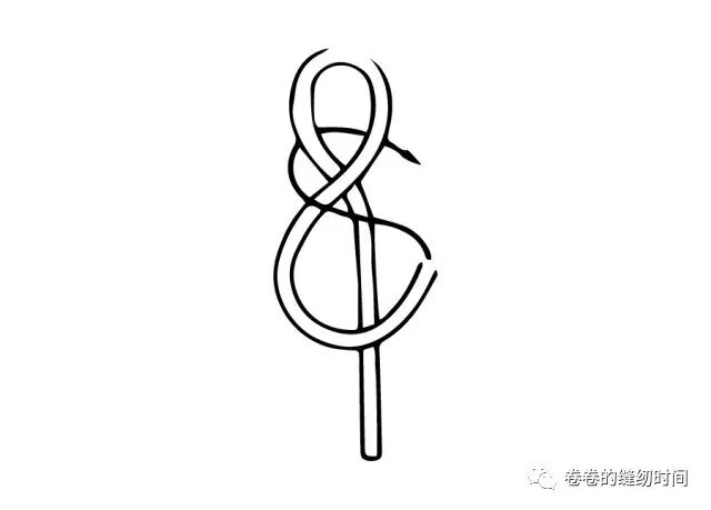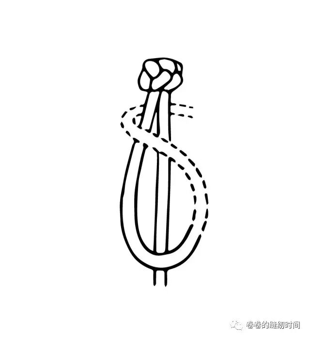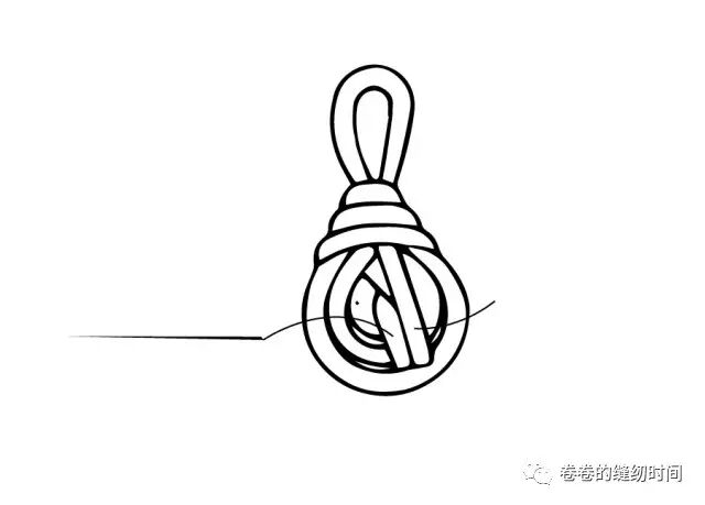 同样的方法从后到前再绕一圈,绕到前面时把绳子穿进去,调整形状