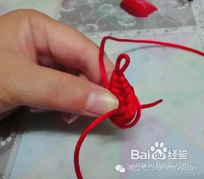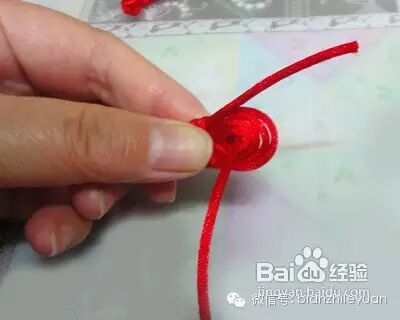 在我们做到第五次的时候,我们要将绳穿进中心的孔内