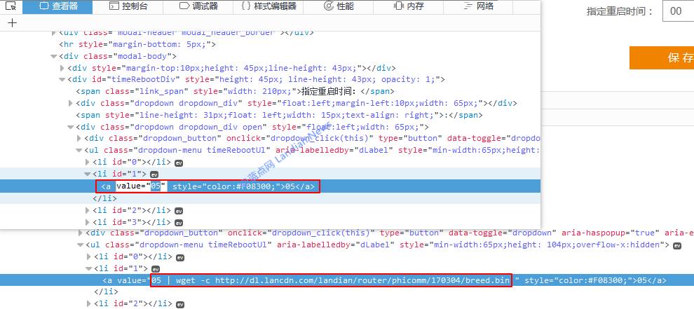 5、上一步保存成功后继续在 05 上审查元素,然后将原来的值 05 粘贴下面的代码然后也需要 保存 哈:
