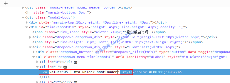 4、在开发者模式中我们可以看到这个 05 对应的值为=”05″,双击 05 即可选中然后 Ctrl+V 粘贴如下代码: