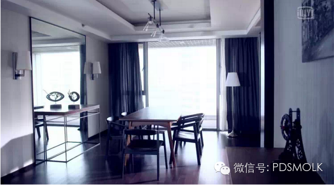 先从进门玄关处说起,这里其实很简单,一面超大的镜子和一个实木鞋柜。可能设计师在设计的时候就考虑到以琛一个人独自生活了七年,一切都从简化了,可是但在其搭配上却花了不少小细节的功夫,这或许也正印证了剧中以琛对默笙的爱如细水般长流吧。